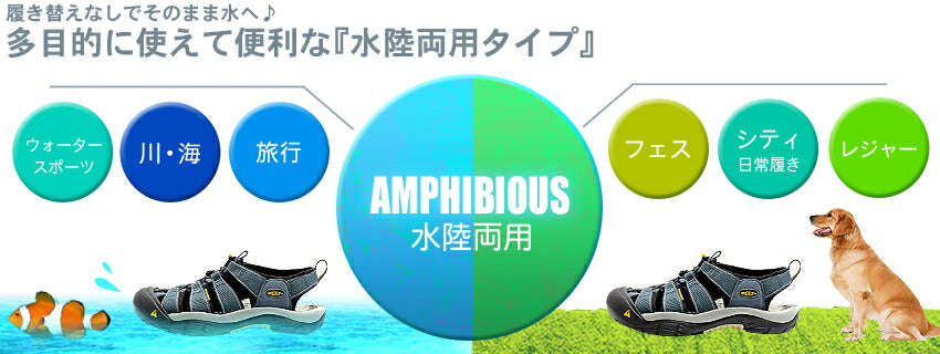 代表的モデルニューポートをベースに、水のあるアウトドアフィールドを想定し、水を吸収しにくい素材を採用しました。オリジナルのアウトソールはコンディションの悪い地面でも、安定したグリップ性を実現。海やダートなど、様々な過酷な状況にも耐え、オールシーズン愛用して頂けるスポーツサンダルです。