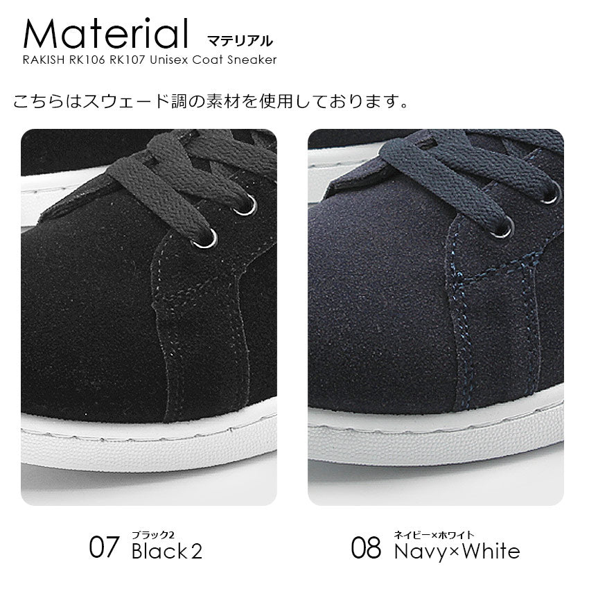定番のコートタイプシューズにラキッシュオリジナルロゴをプリントしたシンプルなスニーカー。アウトソール結合部にステッチを施すなど、リーズナブルなプライスながらこだわりのある一足に仕上がりました。メンズ、レディースどちらにも対応した豊富なサイズ展開で、友達やカップルでお揃いにしたり、色違いで履いたりと様々な用途でお楽しみいただけます。
