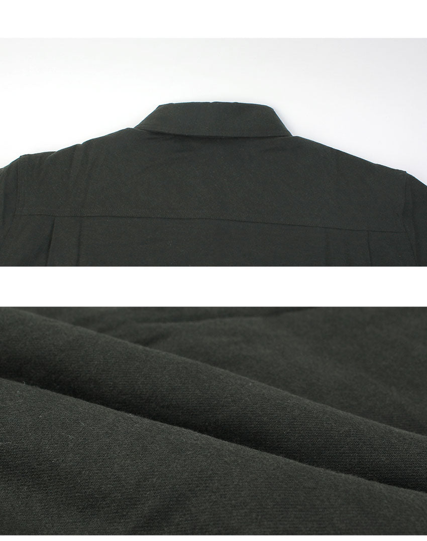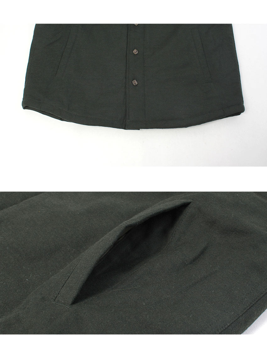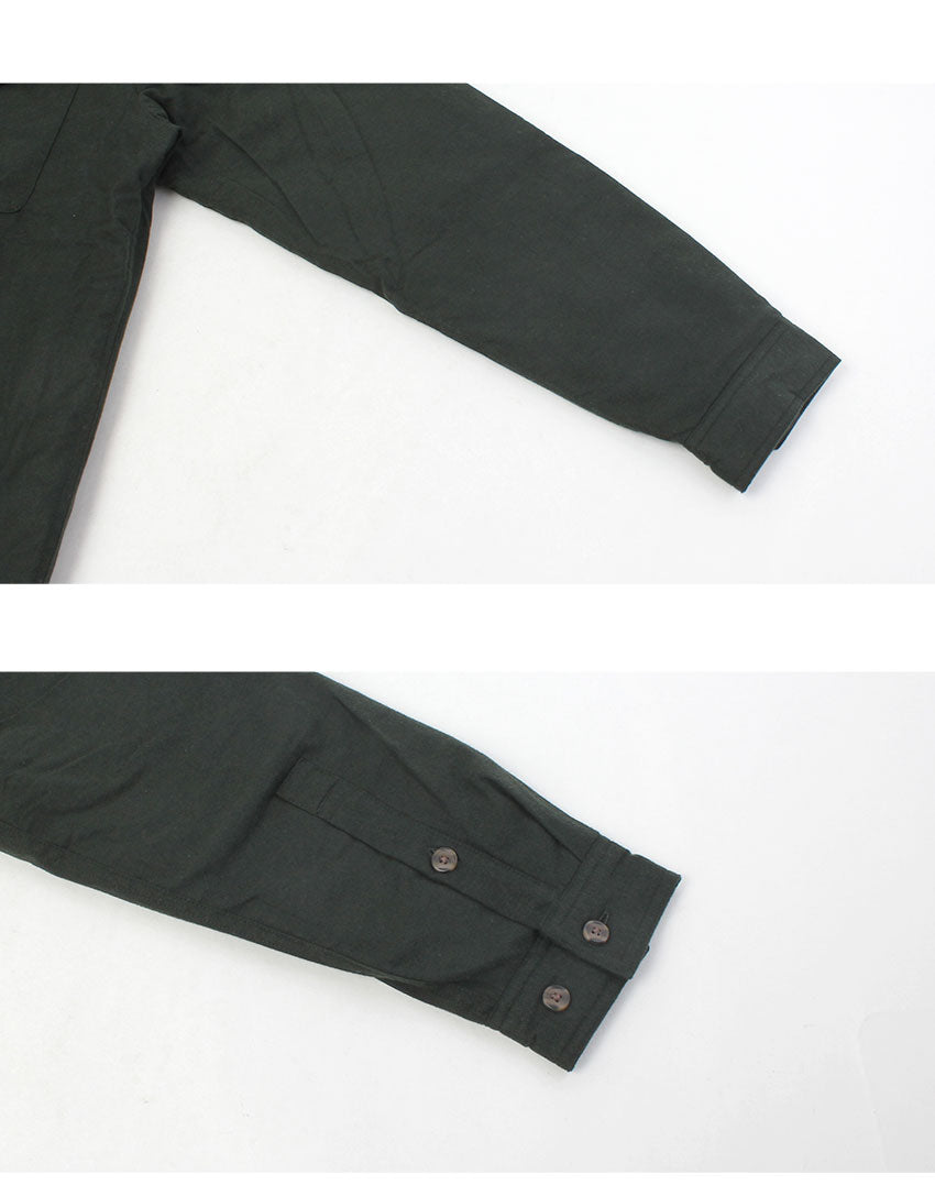 フルレングスのボタンフロントプラケットは気温や状況に合わせて開閉がしやすく、袖口はボタンで調整できる仕様。寒いときはしっかり留め、暖かいときには外して袖をまくることも可能です。収納面では、ボタン留めフラップ付きの胸ポケット2つに加え、サイドエントリーのハンドウォーマーポケット2つを装備。小物の収納はもちろん、寒い日には指先まで暖かく保ちます。裾はシャツテール仕立てで、カジュアルな外出から通勤・通学まで幅広く活躍します。