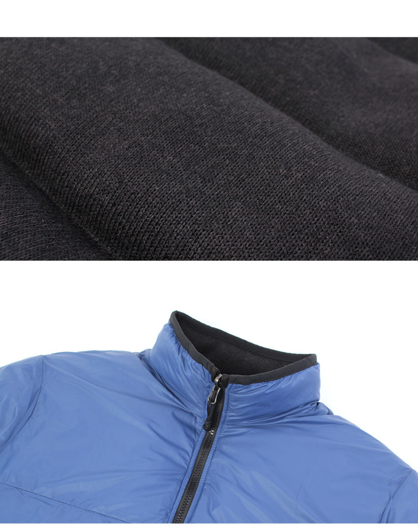 乾燥した寒さのなかではリサイクルポリエステルのニット・フリース面を、湿っぽい寒さのなかではネットプラス・ポストコンシューマーリサイクルナイロンのリップストップ面を表にして着用可能。PFASを意図的に使用せずに製造されたDWR(耐久性撥水)加工済みで、温かい700フィルパワー・リサイクルダウン(ダウン製品から再生されたダックダウンとグースダウンおよび水鳥フェザーのブレンド)のインサレーション入り。