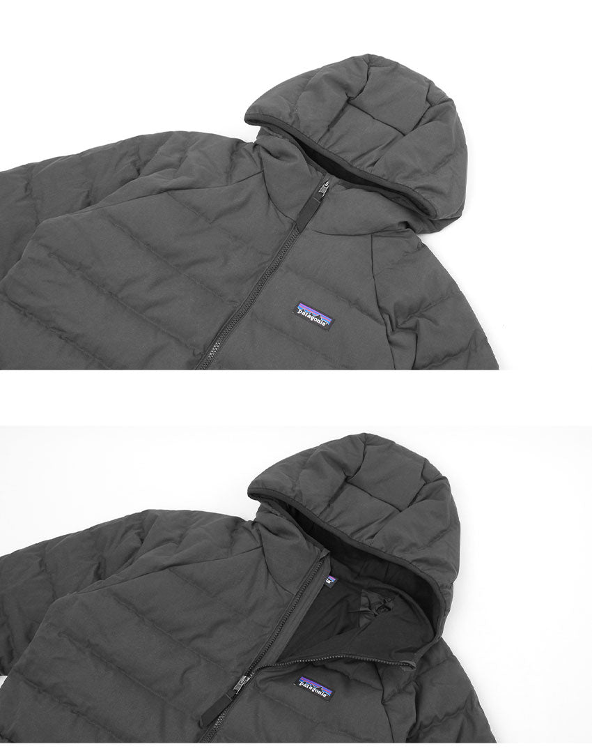 パタゴニア創業50周年を記念した、サステナブル素材を用いたクラシックジャケット。表地と裏地には、リジェネラティブ・オーガニック農法への移行を支援する「コットン・イン・コンバージョン」を使用し、600フィルパワーのリサイクル・ダウンを中綿に採用。快適な着心地を追求したラグランスリーブに、首元まで覆うフルジップとすっきりしたフードを備え、保温性と動きやすさを両立。ハンドウォーマーポケットと内側のジッパー式チェストポケット付き。フード・袖口・裾には伸縮性の縁取りでフィット感を向上。