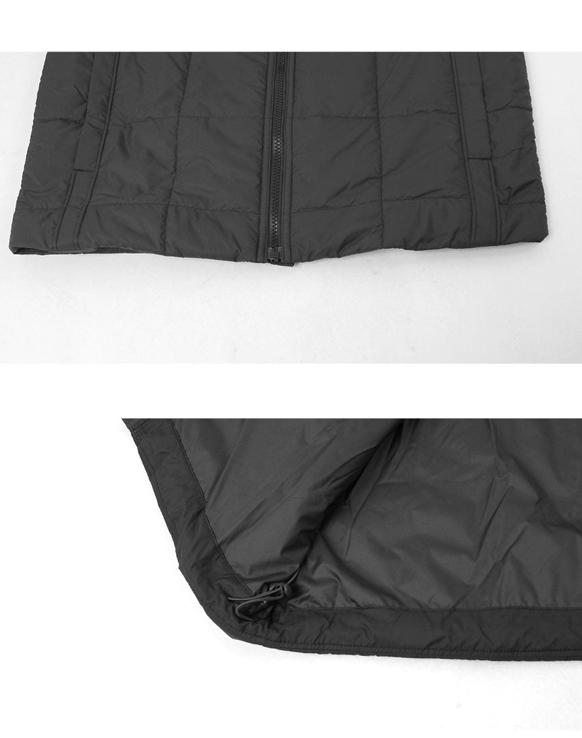 フルジップにはウインドフラップを備え、体温調節が容易に行えます。裾はドローコードで絞ることができ、冷気の侵入を防いで快適な着心地を実現。ポケットは左胸に縦型ジッパーポケットを1つ、さらにスナップボタン留めのハンドウォーマーポケットを2つ配置し、貴重品の収納も安心です。袖口には内側に伸縮性のあるカフスを備え、保温性を高めながらすっきりとしたフィット感を提供します。