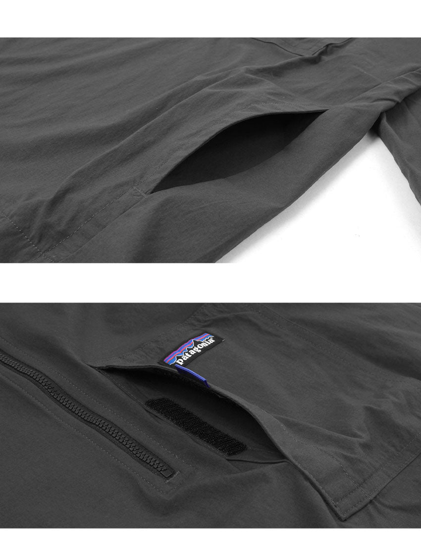 頑丈で多機能的なデザインと快適に動ける伸縮性により、毎日のように活躍すること間違いなし。素材は漁網をリサイクルして海洋プラスチック汚染の削減に貢献する、平織りのネットプラス・ポストコンシューマーリサイクル・ナイロン96%/ポリウレタン4%。PFASを意図的に使用せずに製造されたDWR(耐久性撥水)加工済みで、UPF(紫外線防止指数)40+のUVプロテクションを提供。