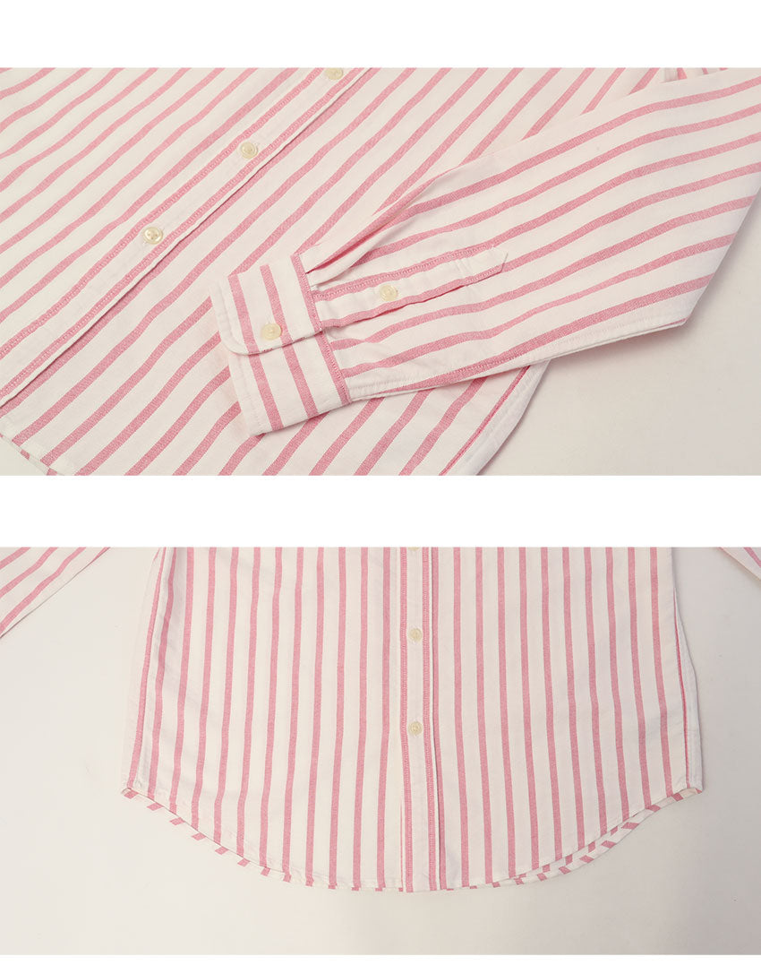 シャツ 長袖 トップス ウェア ボタンダウン リトルポニー ストライプ オフィス カジュアル ビジネス 通勤 通学 刺しゅう 刺繍 ワンポイント 大人