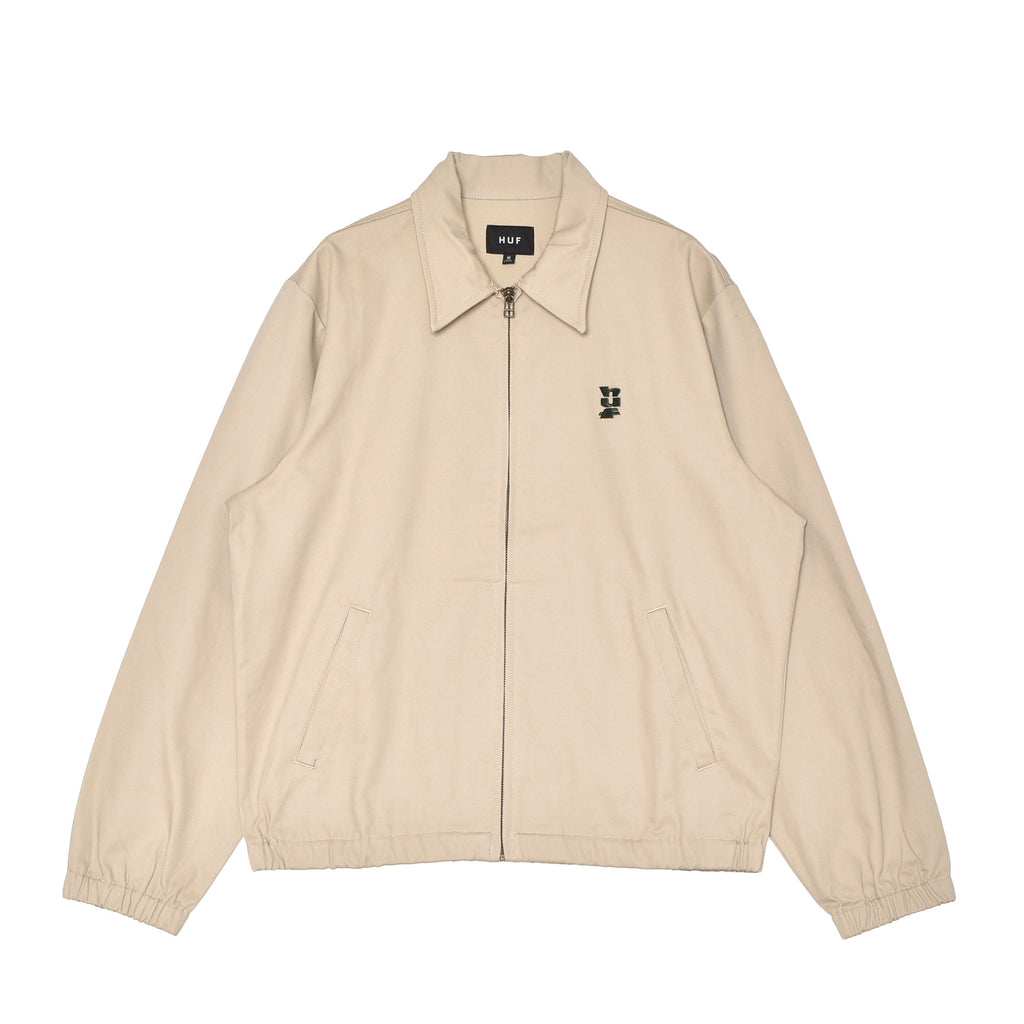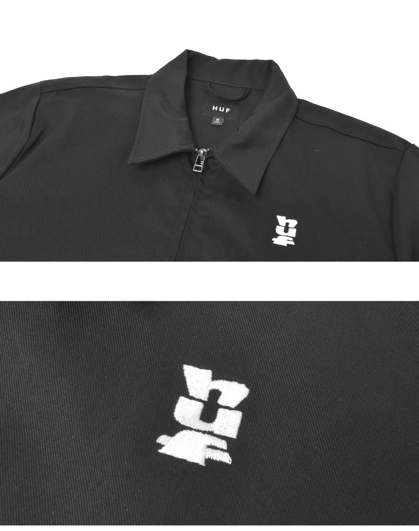 クラシックなデザインにモダンなエッセンスを加えたHUF SETのSET MEGABLAST SHOP JACKET。100%コットンツイル素材を使用し、快適な着心地と耐久性を兼ね備えています。左胸には刺繍アートワークを施し、フルジップ仕様で着脱もスムーズ。フロントにはダブルウェルトハンドポケットを備え、袖口と裾には伸縮性があり快適なフィット感を実現。首元にはHUFの織りラベルがあしらわれ、細部までこだわった一着です。