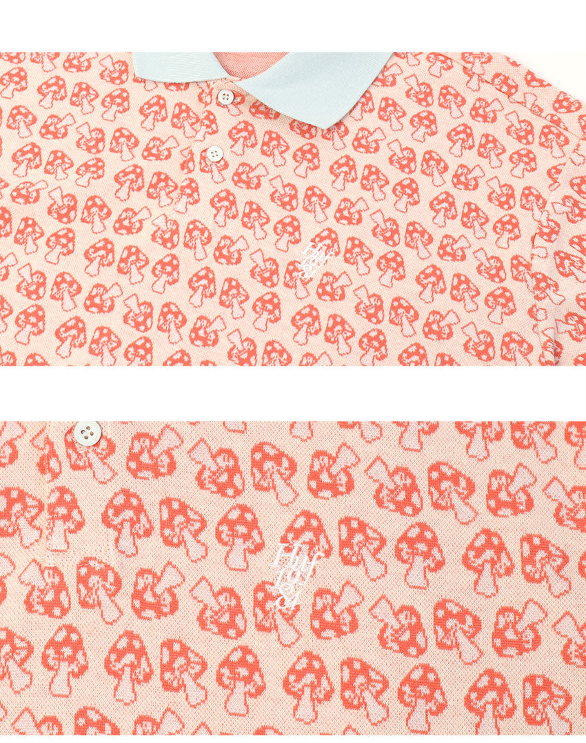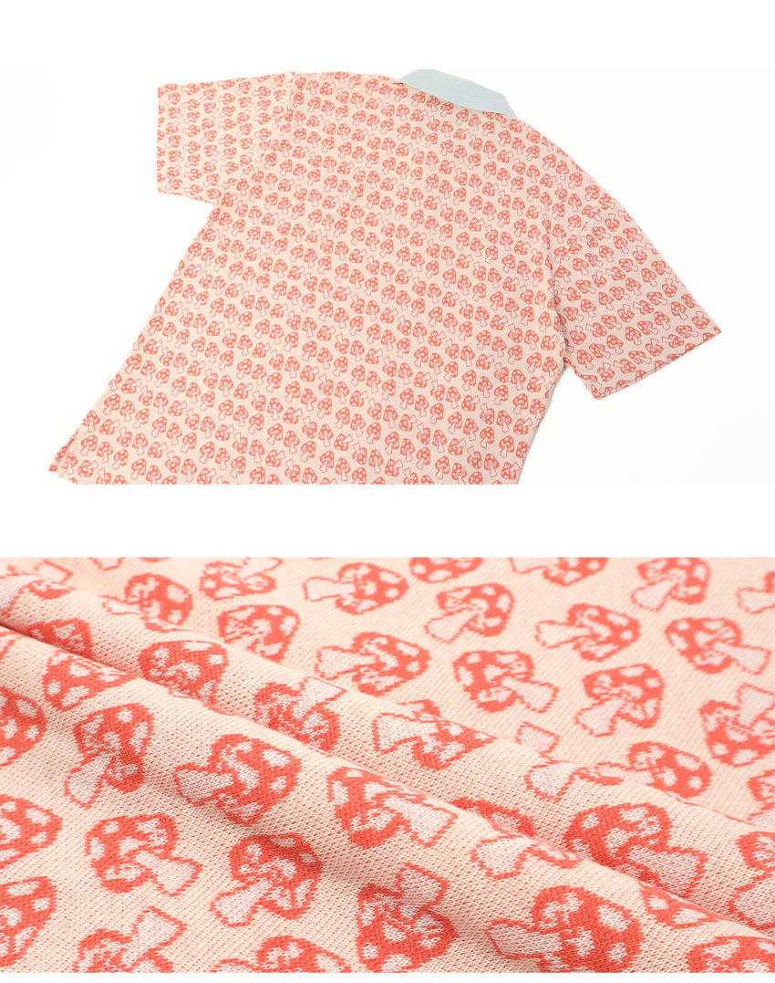 ウェア ポロ カットソー 襟付き 衿付き トップス 半袖 カジュアル おしゃれ 春夏 ユニセックス ジャガード ジャガード織 柄 レトロ オーバーサイズ ストリート スケボー スケートボード レッド 赤 ピンク