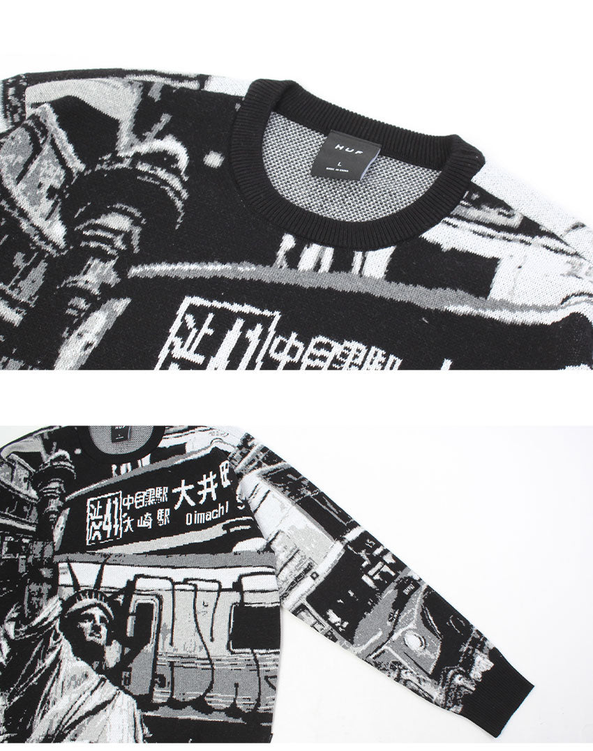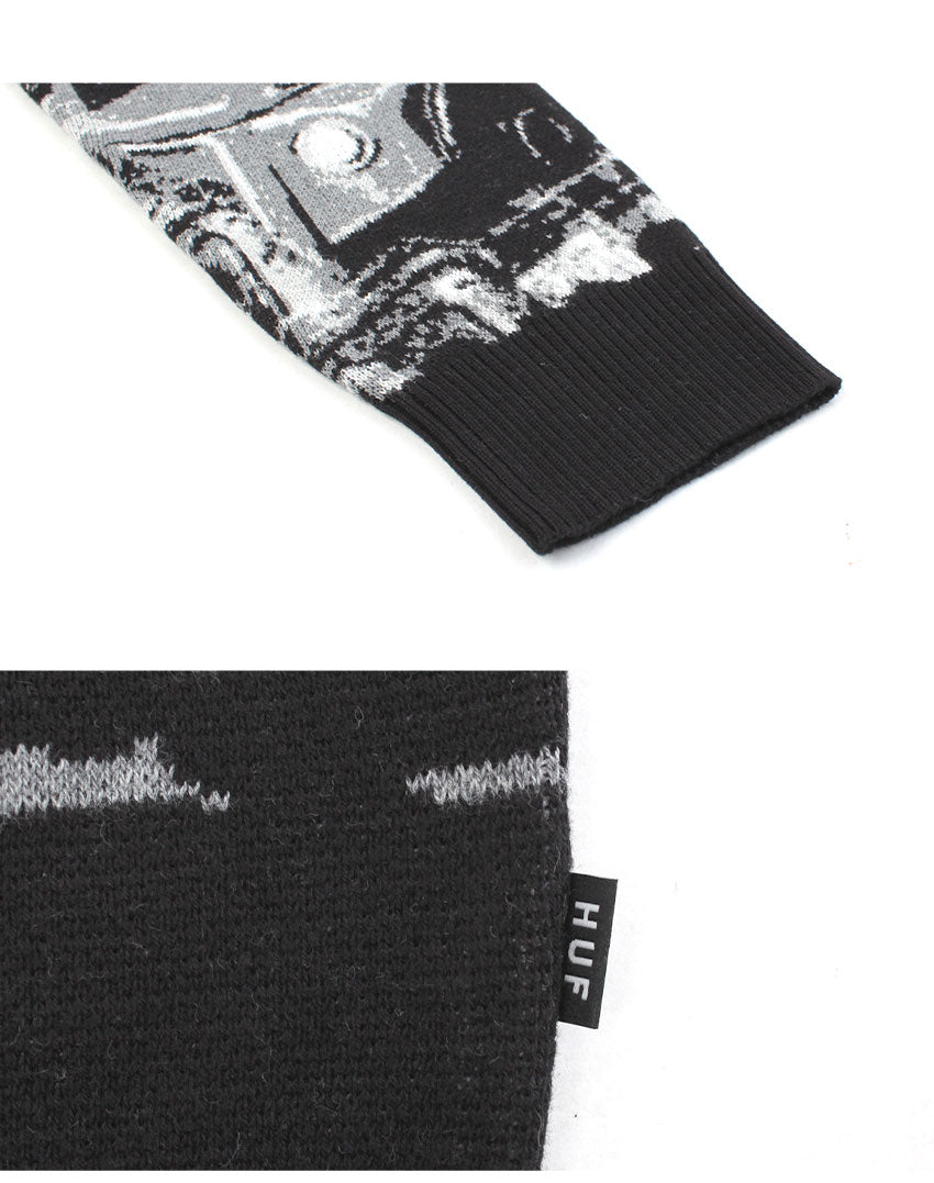 大胆なジャカードアートワークが目を引く、HUFのヘビーウェイトセーター。