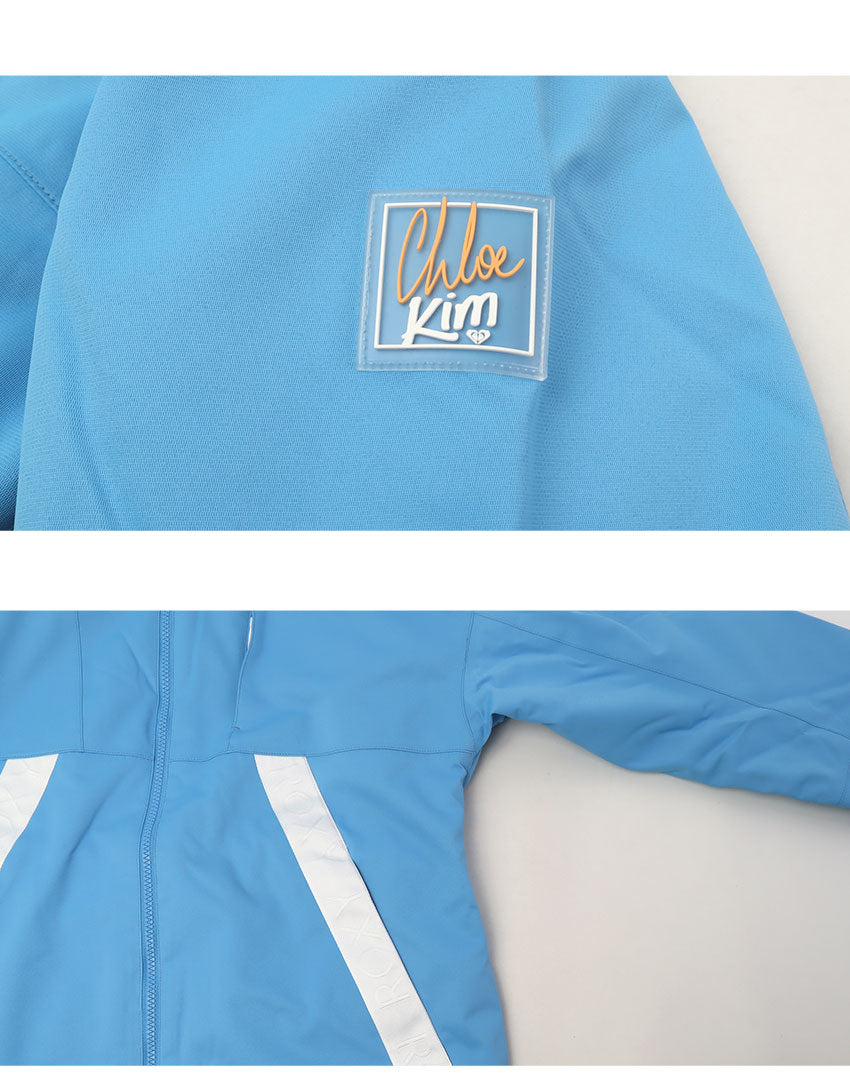 ハンドポケットに施されたROXYロゴ入りジャガードテープが印象的な、クロエ・キムコラボレーションモデル。ライディング中もフードが乱れる心配のないフード固定スナップは、ハーフパイプ選手ならではのリクエスト。