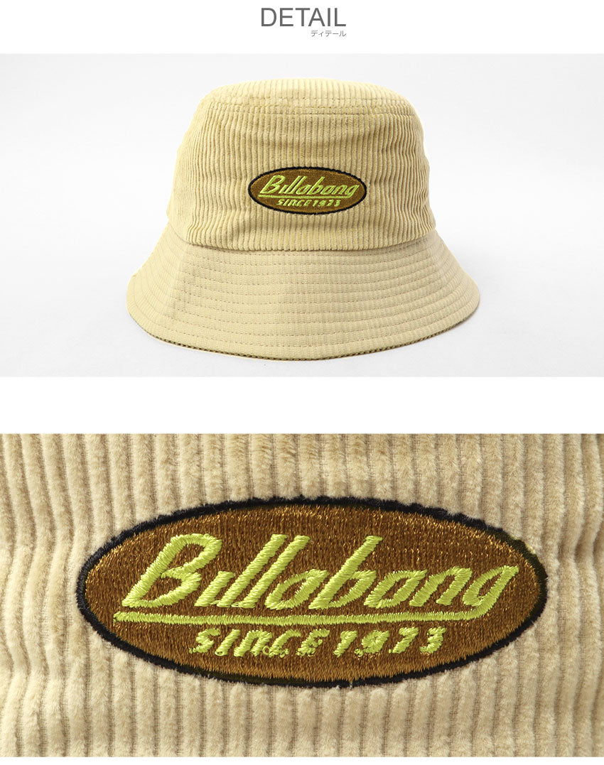 コットンコーデュロイを使用し、フロントにビラボンのブランドロゴを配置したバケットハット。BILLABONG BAD DOGコレクション。
