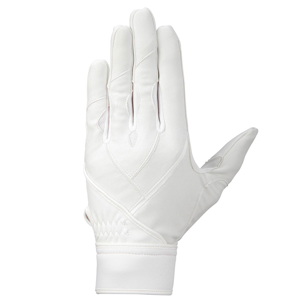 少年達のためのグラブ用手袋。■手首部ノンベルト設計。掌緩衝パッド付き。高校野球ルール対応カラー。少年達の”簡単装着”を実現する為に、従来の手首部ベルトを無くしたジュニア専用設計”手首部ノンベルト設計”を採用しました。少年達の素早い脱着をサポートします。