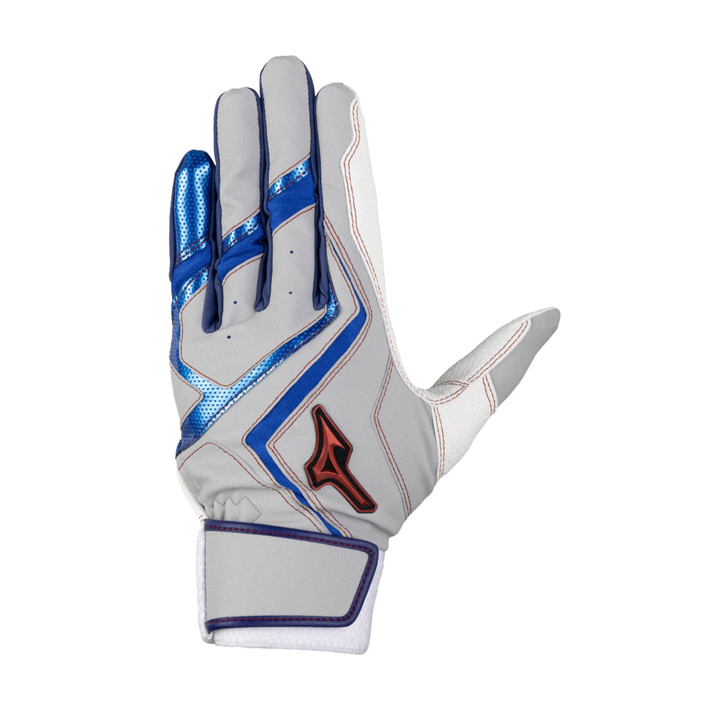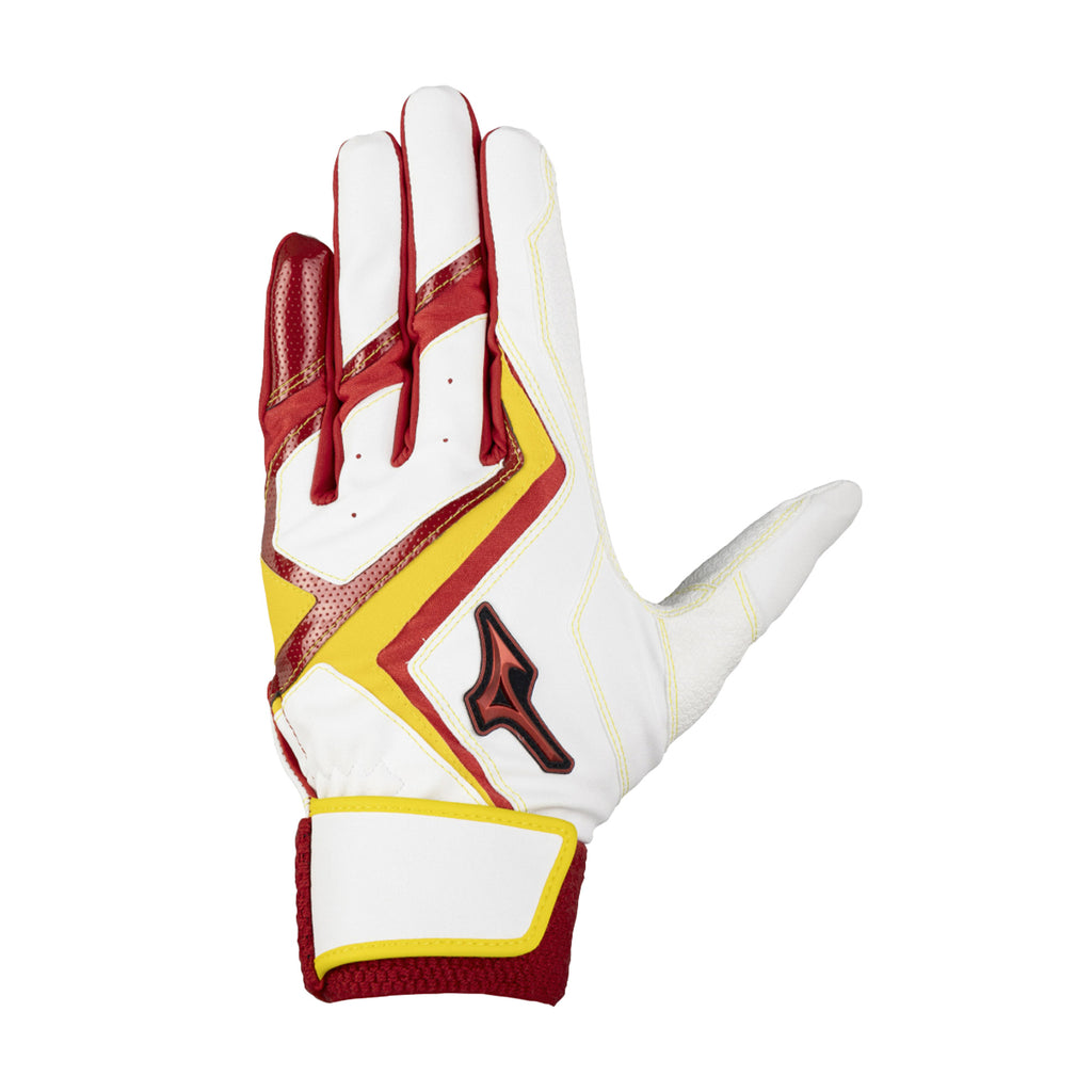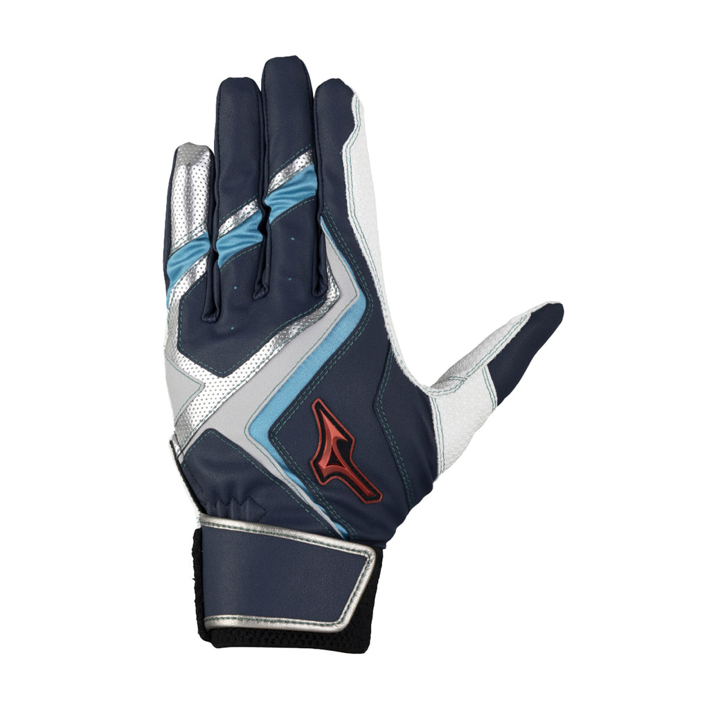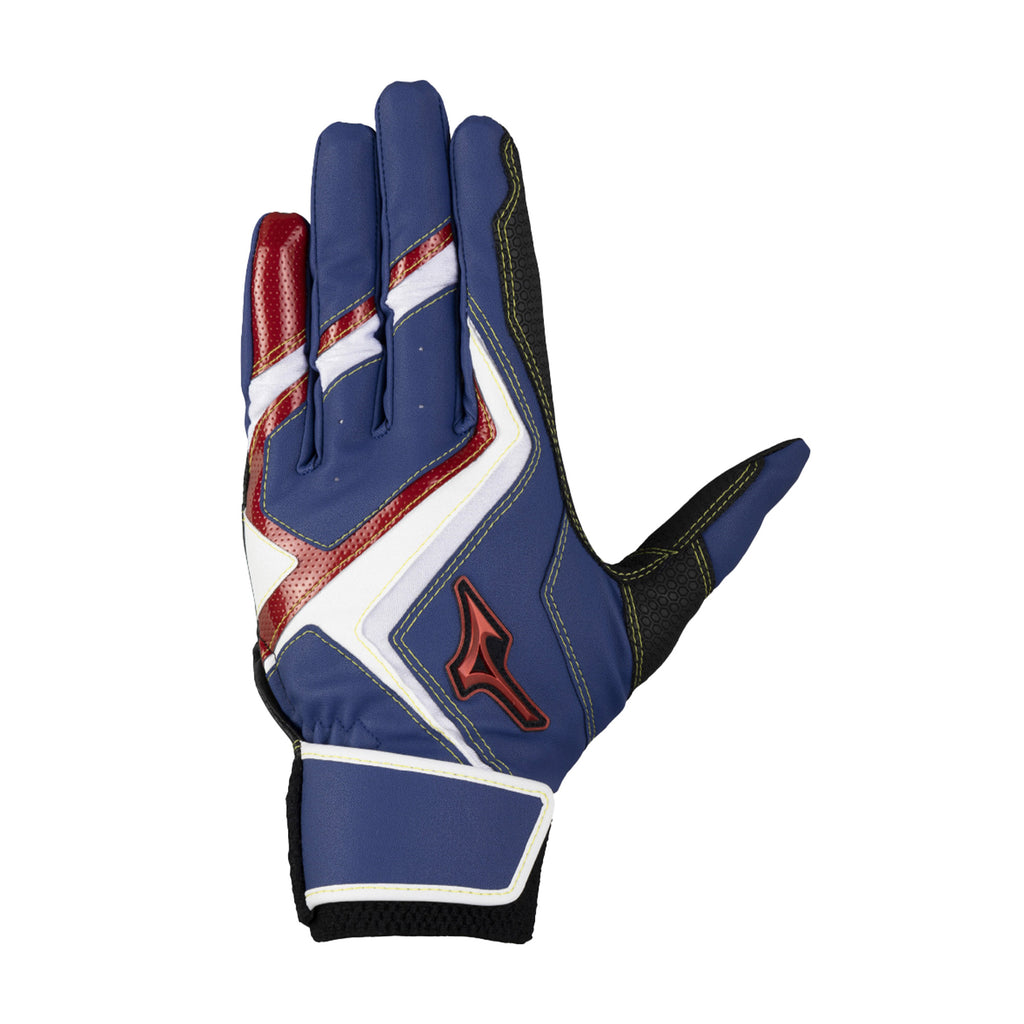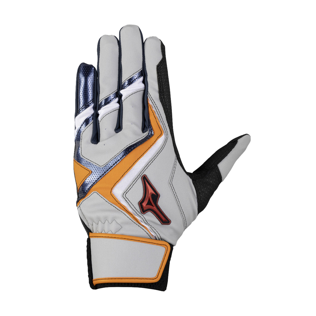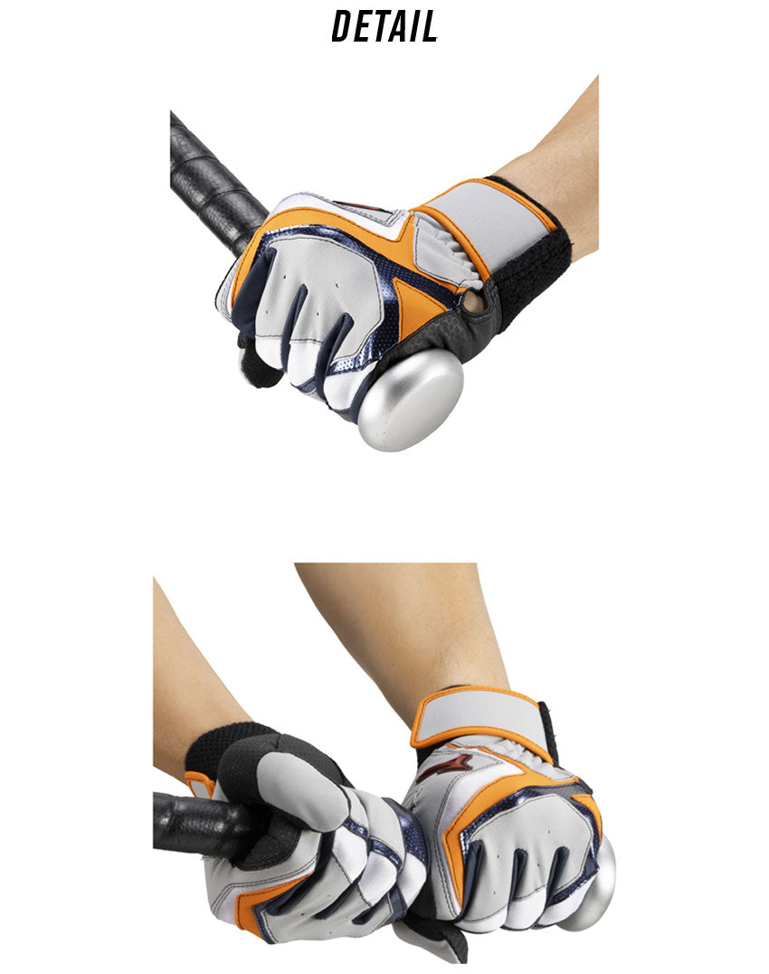 スイング時の力の流れ・強さを分析し、バットへ力を伝えるのに重要な「小指・薬指・中指」と「当て革部」に、表裏両面に高いグリップ力を誇る『特殊合成皮革』を採用。