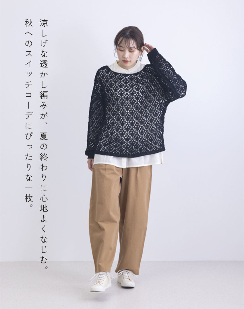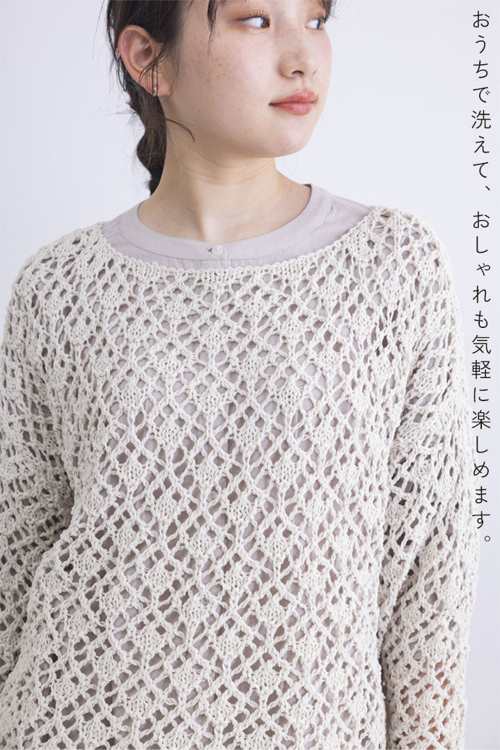 トップス ニット プルオーバー カジュアル シンプル かぎ針 透かし編み ウォッシャブル 着回し 春 秋 冬 おしゃれ