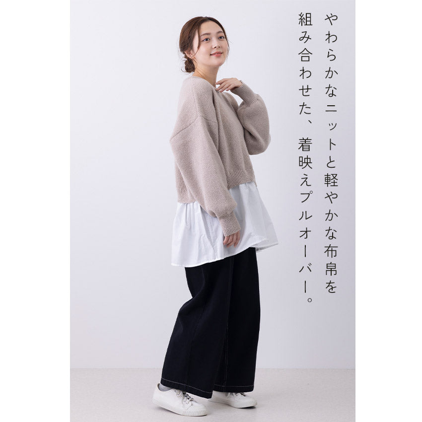 ナチュ&ダイアリーより「布帛ドッキングニットプルオーバー」です。