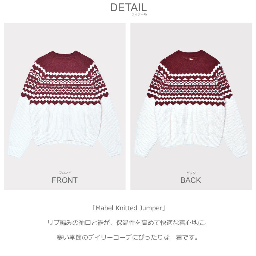 フロントに遊び心のあるインターシャ柄をあしらったフェアアイルニット。