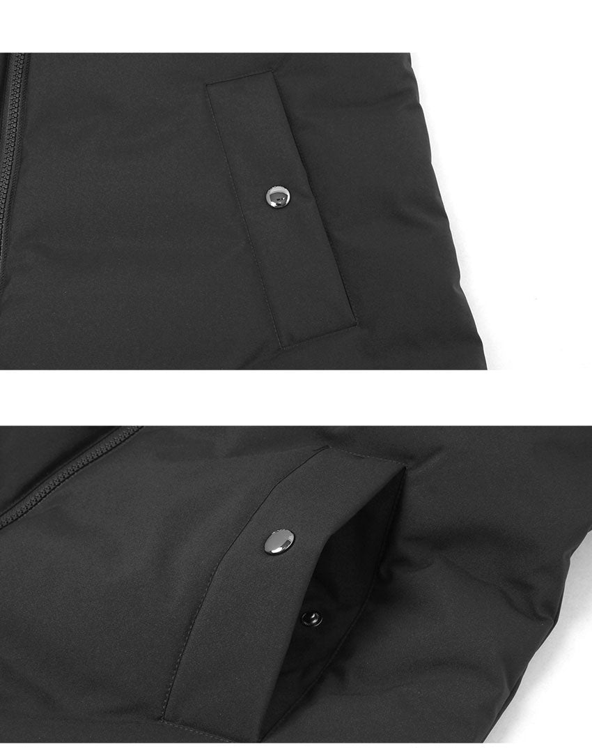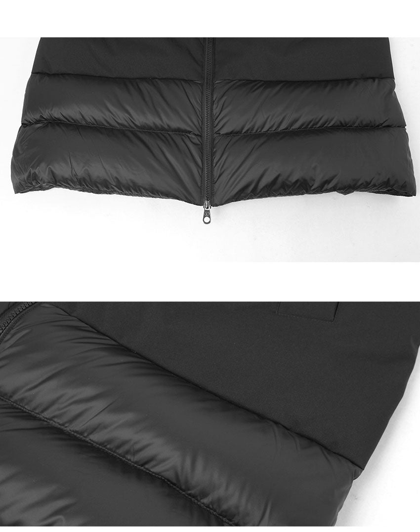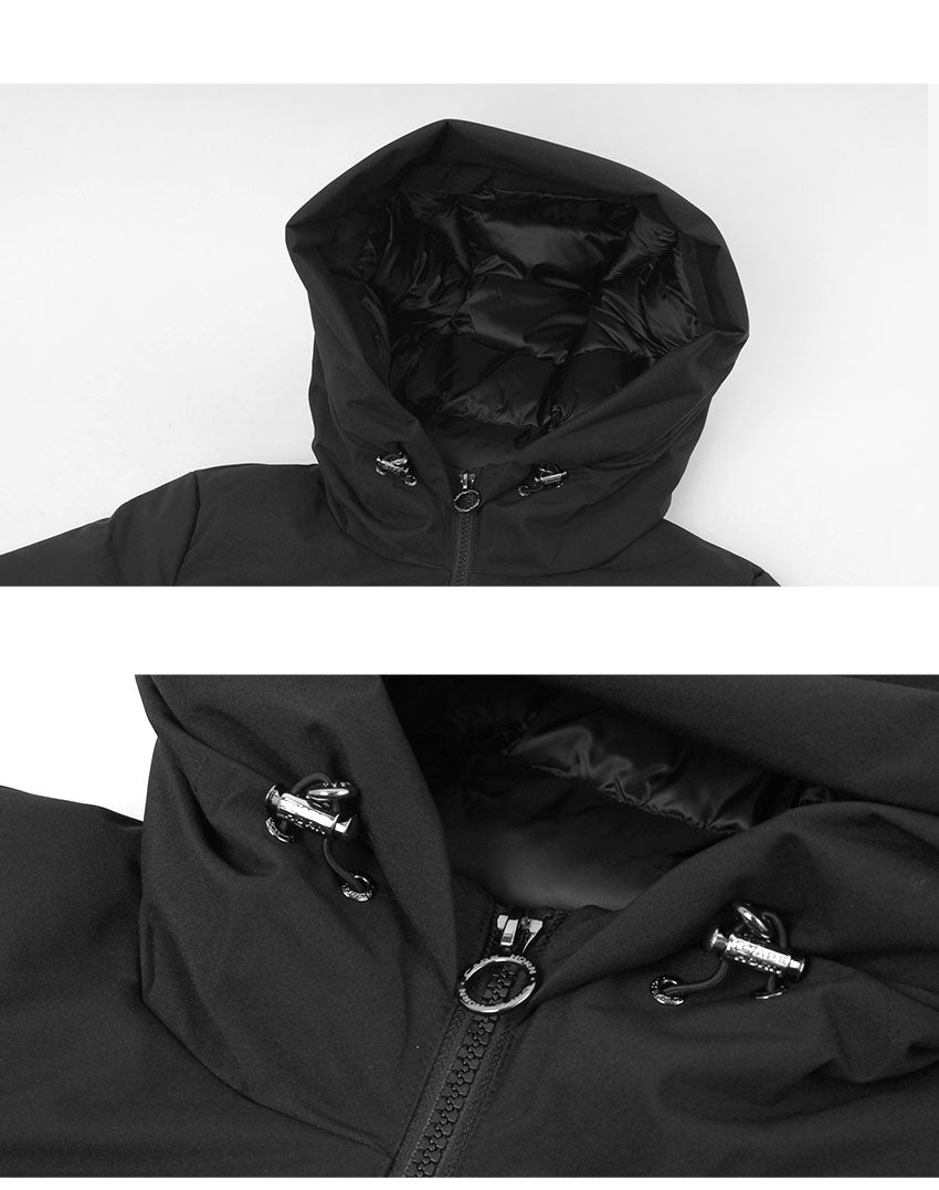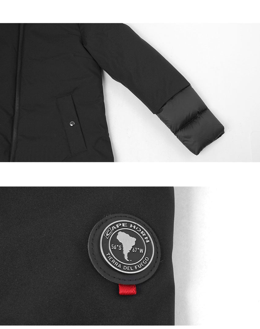 袖口と裾の異素材切り替えが印象的なフード付きダウンコート。ステッチのないすっきりとしたデザインで、上品な雰囲気に仕上げました。ややAラインに広がるシルエットで、ヒップまで覆う着丈で防寒性も抜群。中綿にはフェザーとダウンをブレンドし、ー10度の寒さにも対応します。フロントにはスナップ付きポケット2つと内側ジップポケットを備え、手を温めるフリース裏地も嬉しいポイント。ブランドのメタルロゴが上品に輝く一着です。