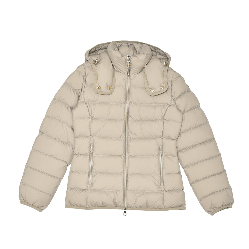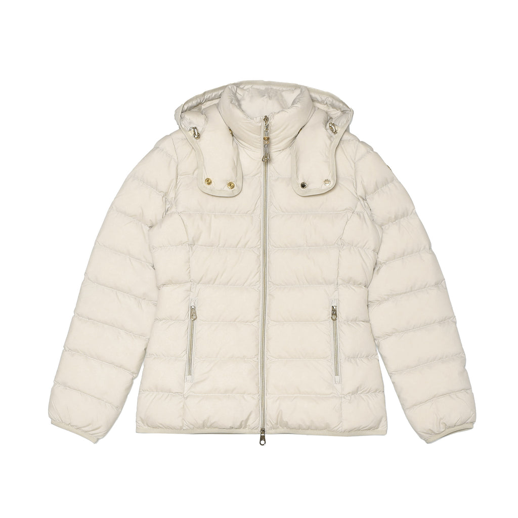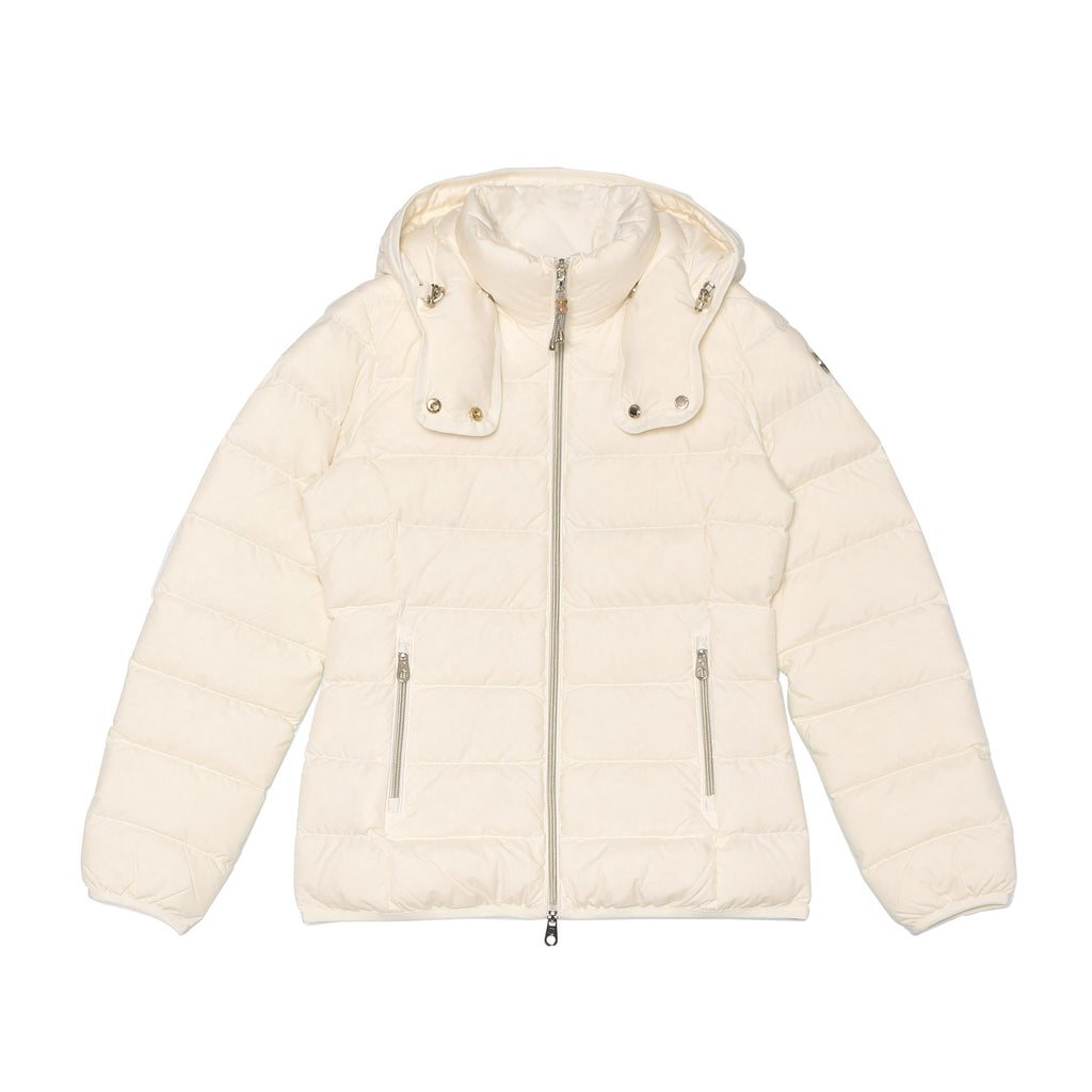 アウター ダウン ダウンコート はっ水 撥水 コート 上着 フード 長袖 カジュアル シンプル ブランド ロゴ ジップアップ 通勤 旅行 保温 エレガント キレカジ ベージュ ホワイト 白