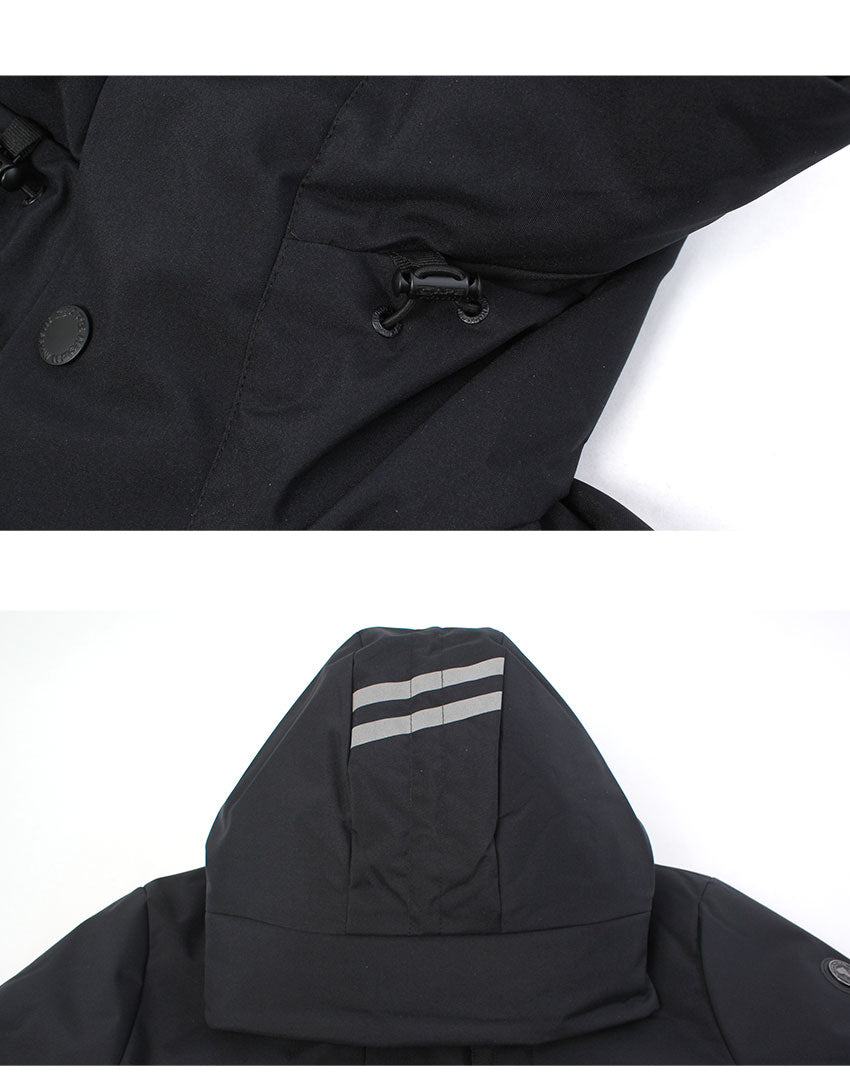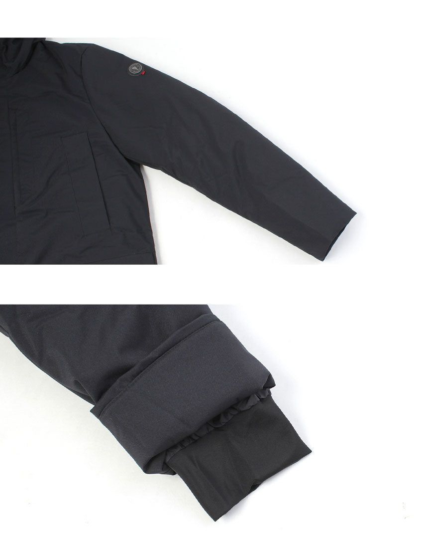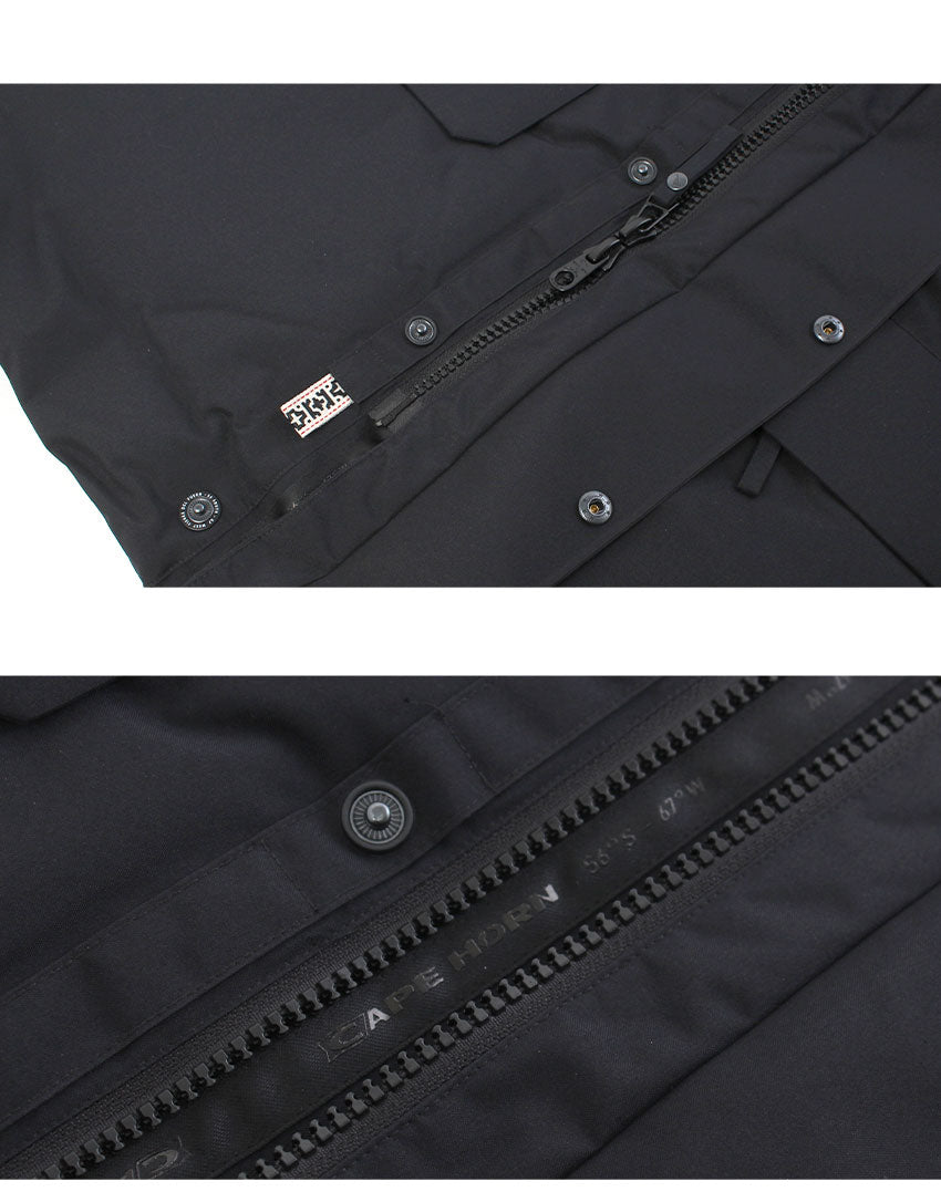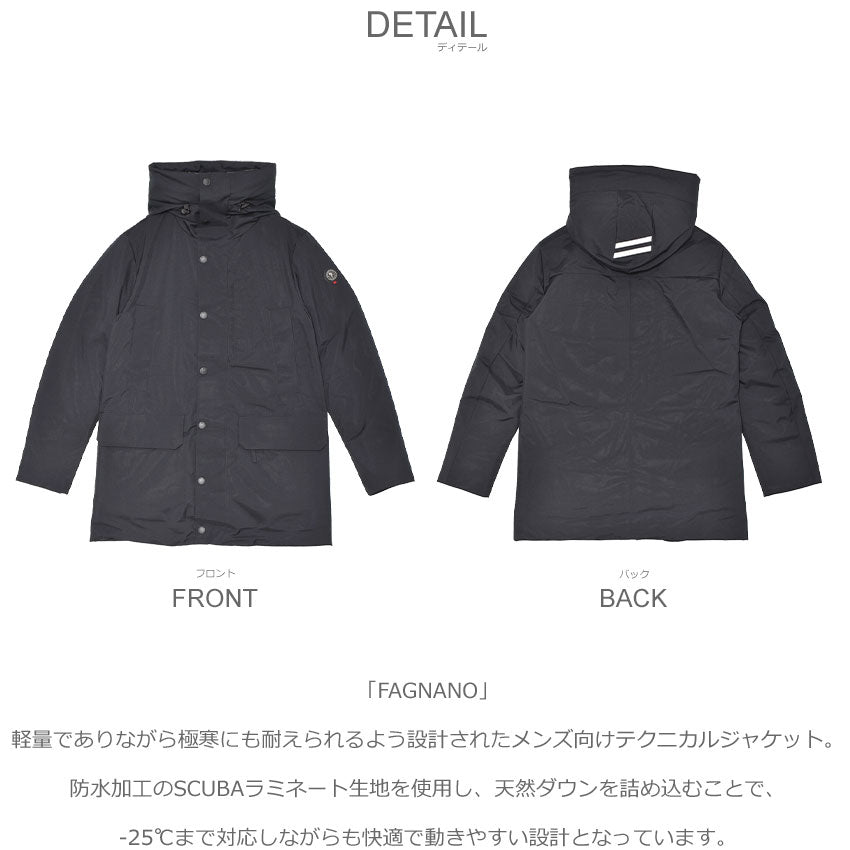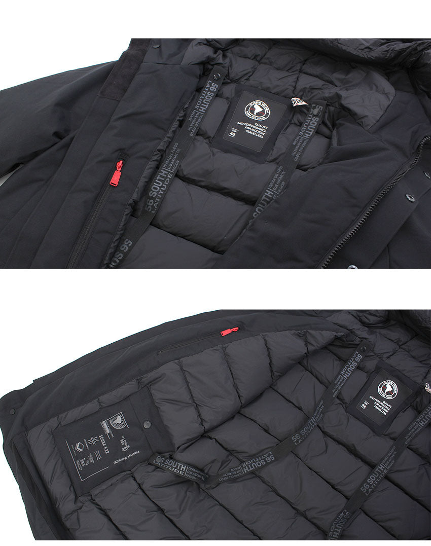 防水加工のSCUBAラミネート生地を使用し、天然ダウンを詰め込むことで、-25℃まで対応しながらも快適で動きやすい設計となっています。センタージッパーはボタン付きフラップで覆われ、調節可能な固定フード、取り外し可能なパッド入りの襟、バックパックとしても着用できる内側のストラップを備えています。フロントポケット5つ、内側に書類用ポケット3つ、防風インナーカフスなど、細部に至るまで、街と自然を行き来する人のために、妥協なくデザインされています。