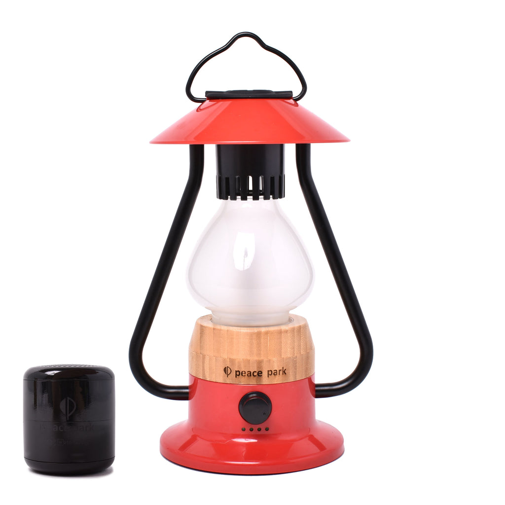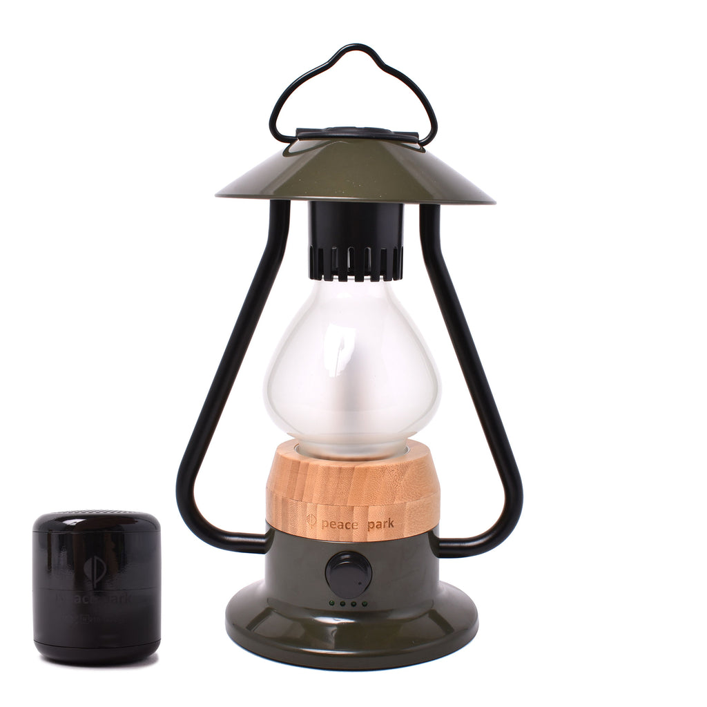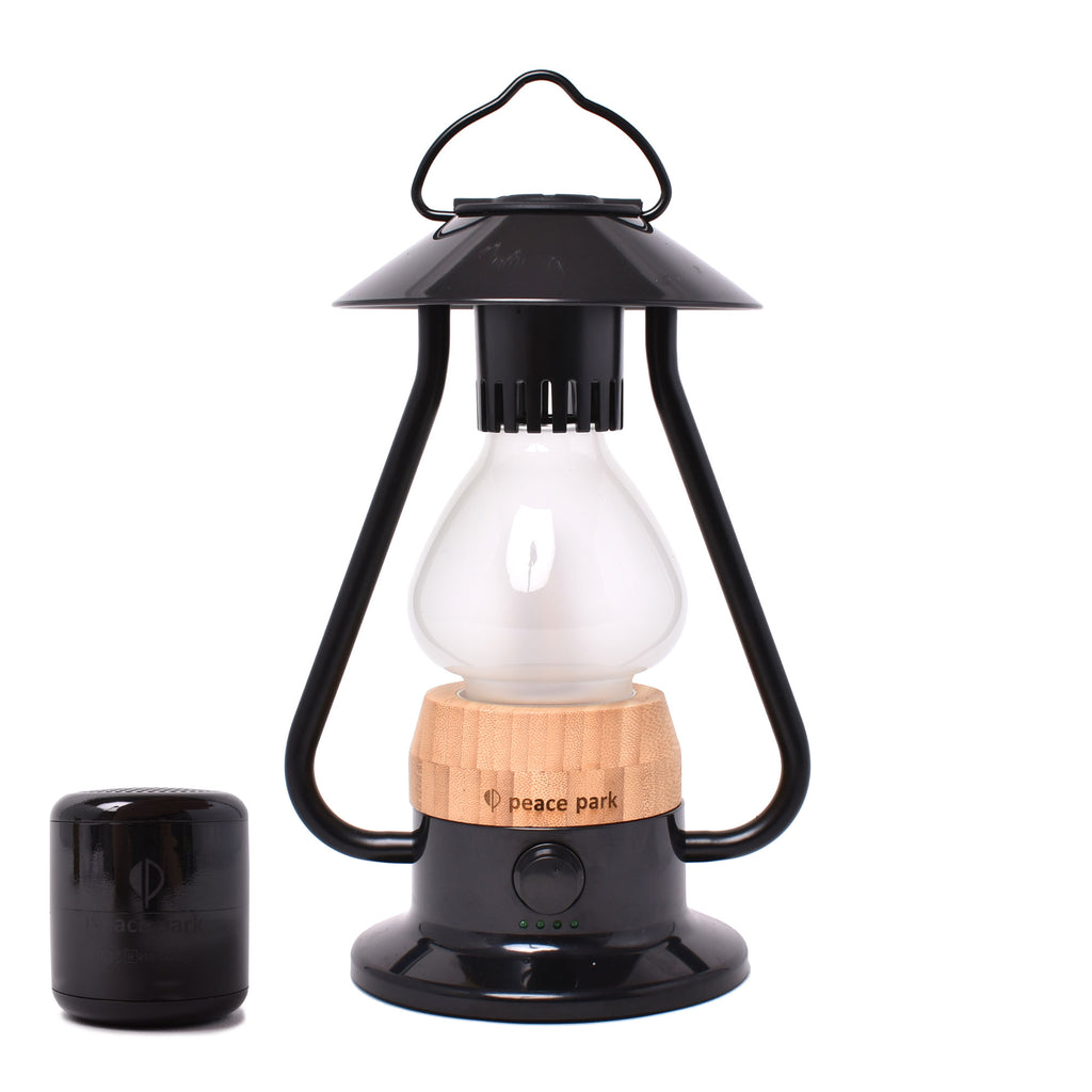 ピース パークより「ファイブエレメンツランタン&ワイヤレススピーカー」です。アウトドアシーンやお部屋のインテリアとしても映える、ランタン。USB接続による充電が可能です。明るさ調節もできるので、夜のテント内や就寝前のサブ照明としても大変便利です。また付属のワイヤレススピーカーのみでもお使いいただけますが、ランタンのシェード内に取り付けて使うことも可能です。