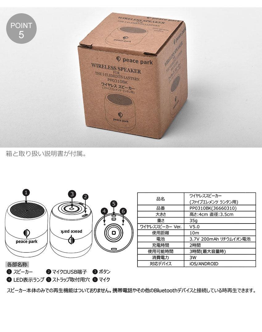 ピース パークより「ワイヤレススピーカー(ファイブエレメンツランタン用)」です。