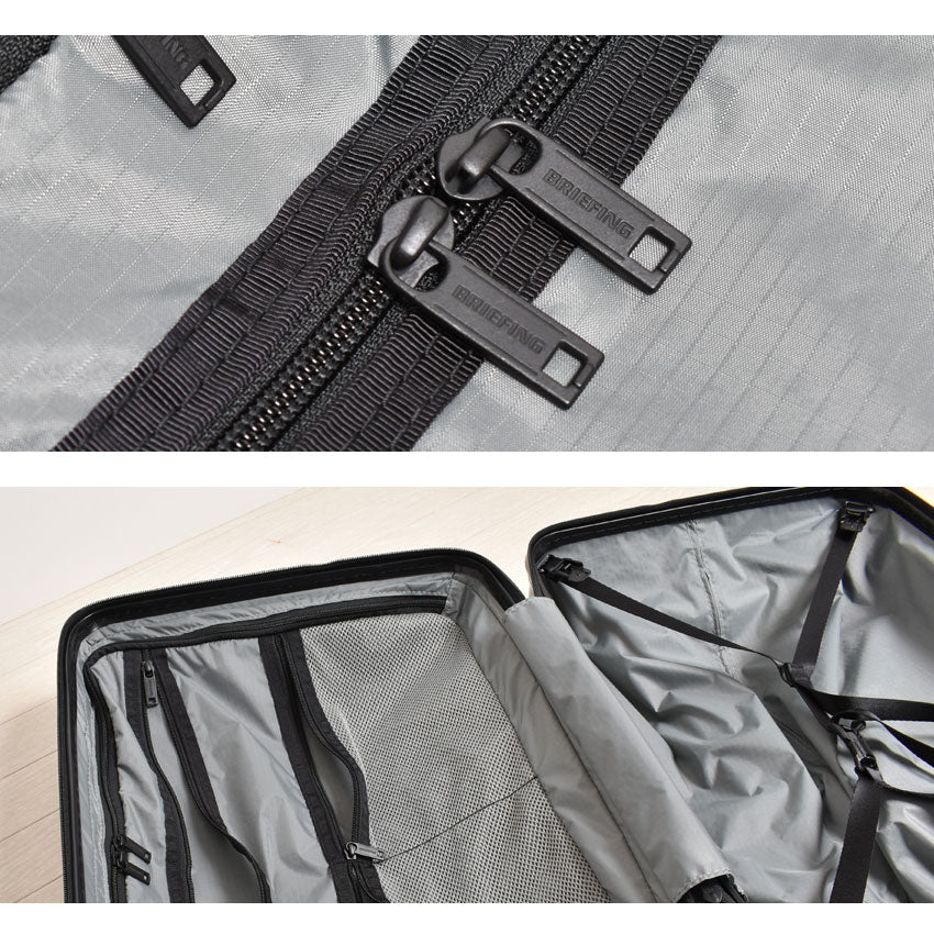 ・中面には収納アイテムの視認性に優れるメッシュポケットのほか、滞在先のホテルウォールポケットとして使用できる仕切り板を搭載。