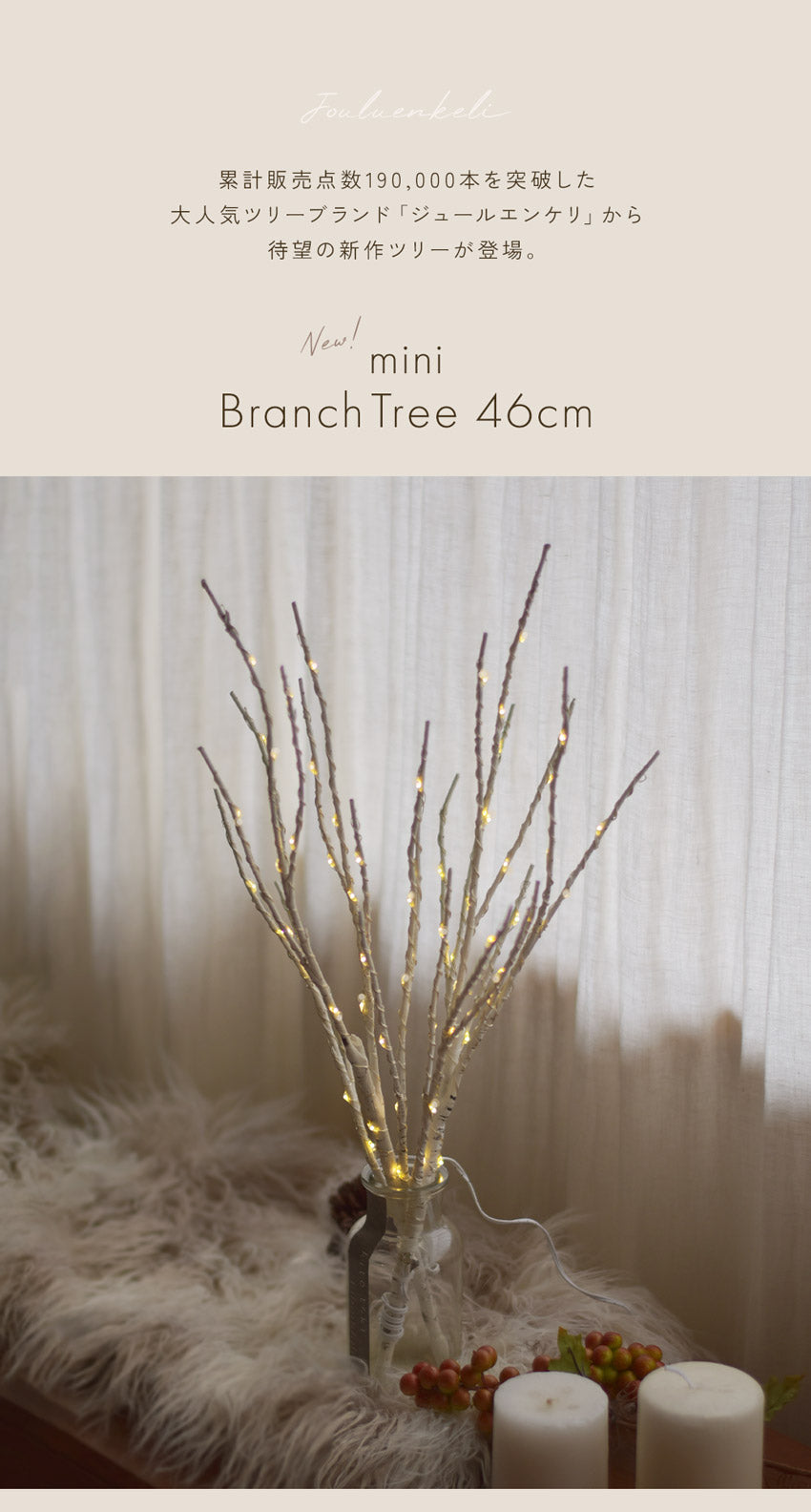 大人気クリスマスツリーブランドジュールエンケリより「ライト付きブランチツリー 46cm」です。