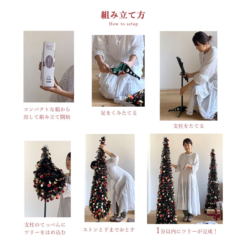 4.ボールの頂点にツリー本体の頂点にある突起部分を差し込む、ツリー本体をかぶせます。ゆっくり本体のすそをおろして完成です。