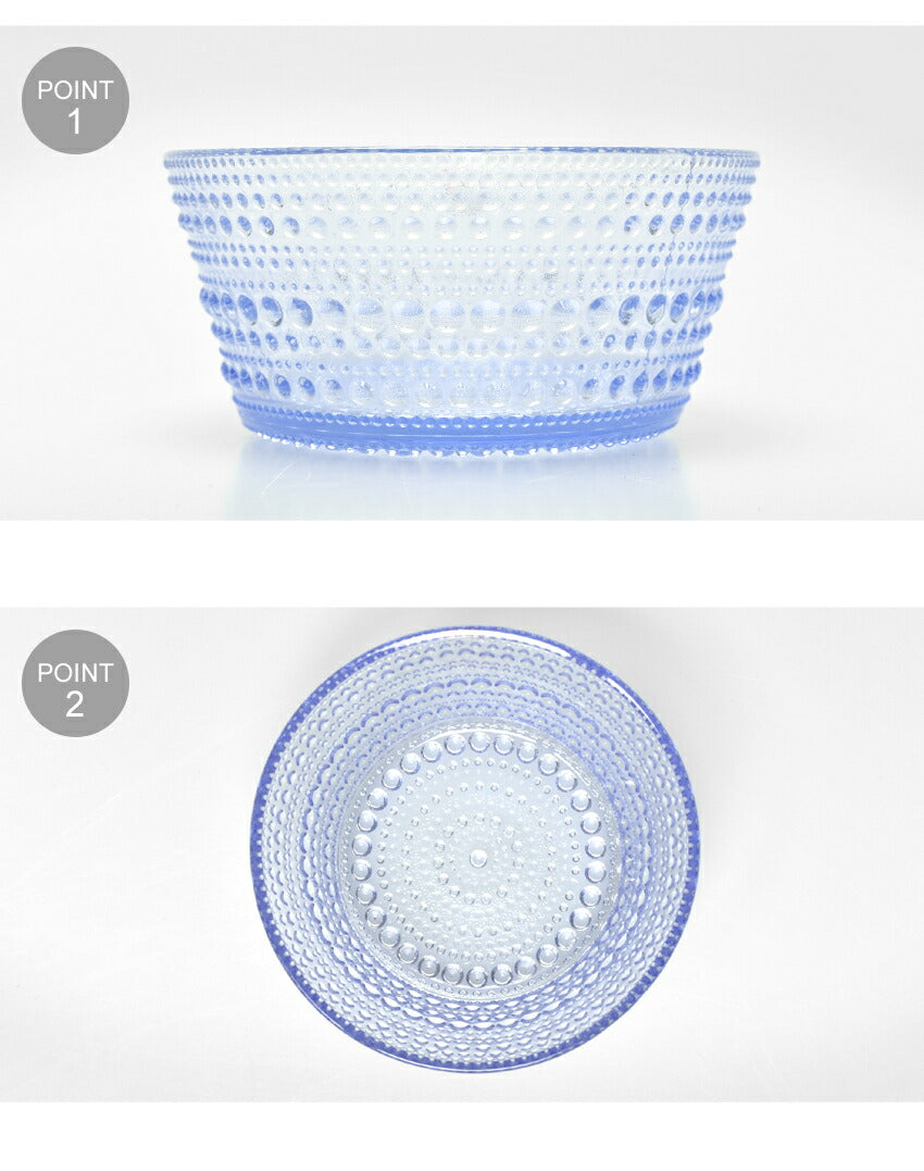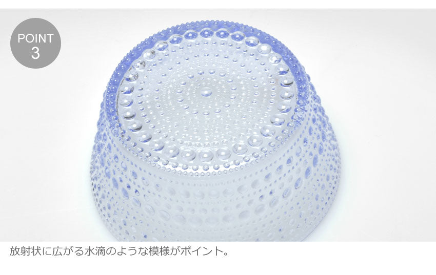 デザイナー Oiva Toikka (オイバ・トイッカ)によるデザインで、放射状に広がる水滴のような模様がとても神秘的です。 プレスガラスなので、どのような食卓にも馴染む温もりが魅力的なアイテムです。